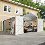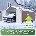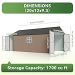 Aoxun 12x20x9.3 FT Shed Outdoor Metal Garage Shed 1700 CUFT Extra Large Storage Shed for Vehicles & Sundries 11″ Snow Load Double-Door All-Weather Garden Shed (Brown)