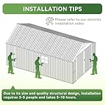 This large parking shed Includes a well-structured frame and requires teamwork for assembly. Follow our clear installation video. Allow no less than 3 people and 10 hours to complete the task. Installation time may vary depending on web site conditions; please plan accordingly for weather