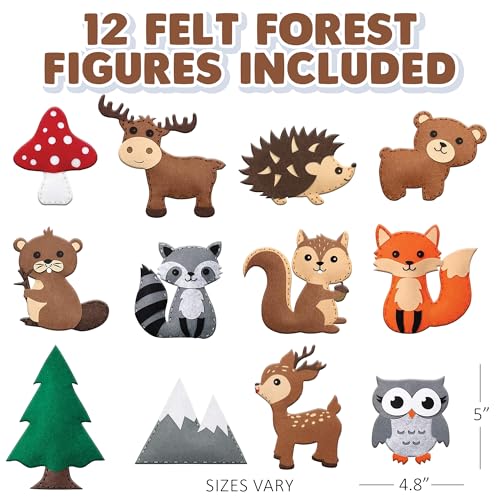 FUN FOREST THEME: Every stitch will be a wonderful adventure! This beginner sewing kit for kids contains a mountain, mushroom, tree, moose, deer, fox, owl, raccoon, bear, squirrel, and hedgehog figure to populate the imagination.