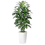 Artificial Dracaena Plant Indoor 5FT – Fake Tree with White Tall Planter – Faux Yucca Tall Fake Floor Plant in Pot – Artificial Trees for Home Office Living Room Decor Indoor