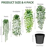 Artificial Hanging Plants for Shelf, 4 Pack Fake Potted Greenery Faux Eucalyptus Vine, Mandala Vine, String of Pearls,Pea pod Leaves in Pot for Office Living Room Bathroom Indoor Outdoor Décor