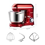 Tilt Head and Outside Design – The tilt-head design mixer allows access to install or uninstall bowl and accessories easily. The kitchen mixer has a stainless steel decoration belt and blue LED light as power indicator. The Red housing with TWO LAYER PAINTING make it look more shining and beautiful in your kitchen.