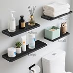 **Three different size Floating Shelves for All** : Large: 16.5 × 5.5 × 4.6 inches; Medium: 14.2 × 5.5 × 4.6 inches; Small: 11.4 × 5.5 × 4.6 inches. These floating shelves are wider and sturdier than others to safely hold collectibles, photos, small plants and showcase favorite dishes or build your own coffee bar. Easy to assemble with all necessary hardware included consistent with the instruction steps.