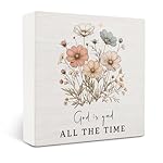 Boho Christian Wooden Signs,Easter Bible Verse Wooden Box Sign,Christian God Is Good All The Time Decor For Home Desk Tabletop Shelf Decoration 5×5 Inches
