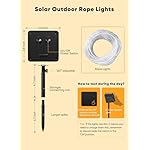 【Indoor and Outdoor Applications】These solar rope lights are waterproof, flexible, and long, allowing you to create stunning decor in your garden, home, commercial building, show, hotel, or restaurant. Use them to decorate windows, patios, and more with their sparkling and magical light, perfect for weddings and parties. Enjoy the flexibility of solar power and beautiful design in any setting;