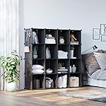 C&AHOME Cube Storage Organizer, 16-Cube Shelves Units, Plastic Storage Cubes, DIY Closet Organizer, Modular Closet Storage Shelves Ideal for Home, Bedroom, 48.4″ L × 12.4″ W × 48.4″ H Black SUM3016H
