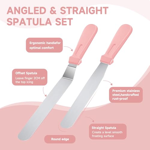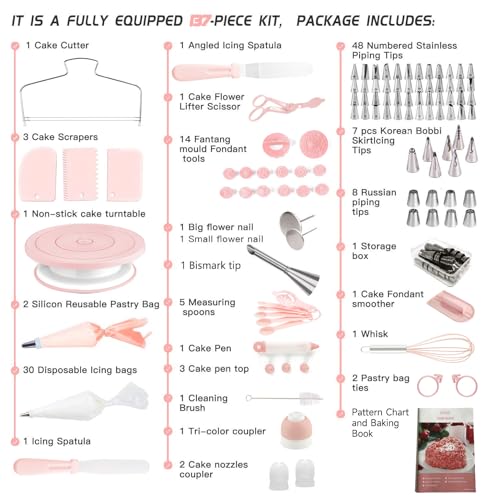 Cake Decorating Kit,137pcs Cake Decorating Supplies with Cake Turntable for Decorating,Pastry Piping Bag,Russian Piping Tips Baking Tools, Cake Baking Supplies for Beginners(Light Pink)