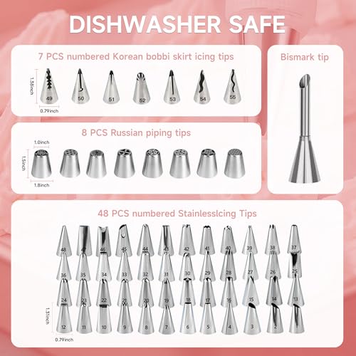 CAKE DECORATING ACCESSORIES :Whether it is lettering or frosting swirls if you end up decorating cupcakes, pies, desserts & pastries; these fondant tools permits you to decorate your tasty treats with ease,NUMBERED TIPS: We have selected top 63 tips including Round Tips, Leaf Tips, Petal Tips, French Tips, Basket Weave tips, open Star Tips close Star Tips, Drop Flower tips, use carefully selected stainless steel of 304 grade, Stainless steel tips with a handy re-usable storage case