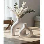 Carrot’s Den Donut Vase, Set of 2 – White Large Ceramic Vase – Minimalist Nordic, Hollow | Table Centerpiece, Olive Plant, Wedding, Living Room, Bookshelf, Office, Modern Home, Entryway, Console
