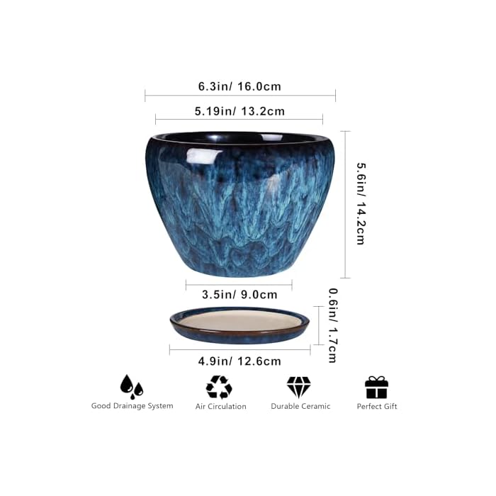 Ceramic Plant Pot: The ceramic pot is high temperature fired stoneware that are durable and lightweight that convenient so that you can use