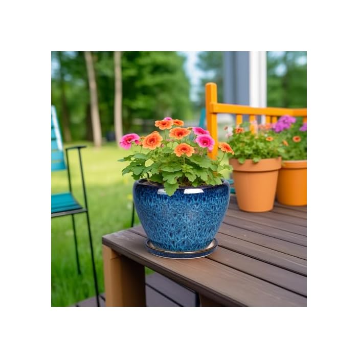 Drainage Hole and Saucer:There is a drainage hole at the bottom of the flower pot, which can discharge excess water and benefit the growth of plants; the lightweight ceramic saucer can not only keep your desktop clean, but also convenient your movement