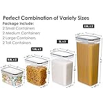 Perfect Combination of Variety Sizes — Our 8 Pcs airtight food containers come in 4 sizes for all your storage needs, 2 Tall Container (2.5QT/2.8L), 2 Large Container (1.8QT/2.0L), 2 Medium Containers (1.5QT/1.6L), 2 Small Container(0.7QT/0.8L). Perfect for storing spaghetti, cereal, flour, sugar,pasta, nuts, rice, grain, beans, snacks and other dry food.