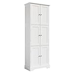 ChooChoo Tall Bathroom Storage Cabinet with 6 Doors, Freestanding Floor Cabinet with Adjustable Shelves, White Pantry Cabinet for Bathroom, Kitchen, Laundry Room