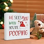 Christmas Bathroom Decorations – Funny Christmas Decor, He Sees You When You’re Pooping Bathroom Wooden Sign, Home Decor for Desk Table Shelf 5 X 5 Inches