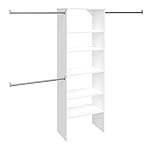 ClosetMaid SuiteSymphony Wood Closet Organizer Starter Kit Tower and 3 Hang Rods, Shelves, Adjustable, Fits Spaces 5 – 10 ft. Wide, Pure White, 25″