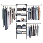 FITS CLOSETS 5 – 10 FT. WIDE: Fits closets 5 feet to 10 feet wide; Hang rods expand from 30 inches to 48 inches, can be installed on only one side of unit or trimmed for smaller closets