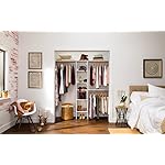 ClosetMaid SuiteSymphony Wood Closet Organizer Starter Kit with Tower and 3 Hang Rods, Shelves, Adjustable, Fits Spaces 4 – 9 ft. Wide, Engineered Wood, Pure White, 16″