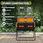Dual Rotating Batch Compost Bins:Two 22.5-gallon rotating chambers work like a composting conveyor belt—load fresh scraps into one side whilst harvesting finished compost from the other. No more waiting between batches or backbreaking turning! 2 large sliding doors allow effortless loading and quick harvesting compost, whilst the thoughtful 37.5″ height design keeps your back happy all the way through operation.