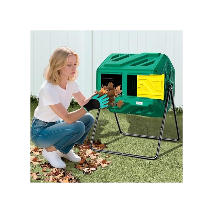 Large 43-Gallon Capacity & Dual Chamber Design: The 43-gallon dual chamber composter allows you to separate materials for faster processing. This design maximizes efficiency, saves time, and ensures sustainable composting, helping you produce more compost in less time