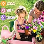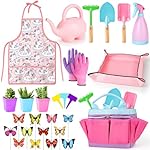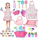 deAO Kids Gardening Set, Garden Tool for Toddlers, Gardening Kit Include Safe Shovel Rake Fork Gloves Apron Watering Can and Tote Bag, Outdoor Toys Gift for Boys Girls
