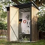 Devoko Outdoor Storage Shed 5 x 3 FT Lockable Metal Garden Shed Steel Anti-Corrosion Storage House with Single Lockable Door for Backyard Outdoor Patio (Brown)