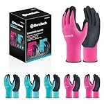 DURATECH 6 Pairs Garden Gloves, Work Gloves with Latex Coating, Pink & Blue, Large, for Gardening, Yard Work