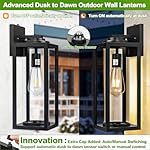 【Classic Fusion with Modern Grace】Merging timeless country charm with up to date finesse, this pair of dusk to dawn out of doors lights for house stands out. Boasting thick clear glass panes, they cast a radiant glow, enhancing all they illuminate. Their design, inspired by age-old lanterns, is refined by modern lines and meticulous craftsmanship. Suitable for homes of traditional allure or modern simplicity, these large dusk to dawn out of doors light fixture are a versatile enhancement to any decor.