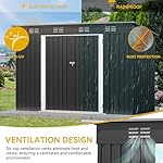 ALL-SEASON SUITABILITY – The garden shed is constructed with thickened galvanized steel and a resilient frame, and offers impressive rust protection. The design includes overlapping wall panels and a tilted roof to prevent rainwater accumulation, enabling year-round use
