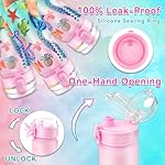 【Easy to Open & Leak-Proof】:Our water bottles feature a convenient pop-up switch for simple to drink with a single click. The safety catch ensures no accidental leaks, whilst the food-grade silicone ring provides 360-degree leak-proof protection.