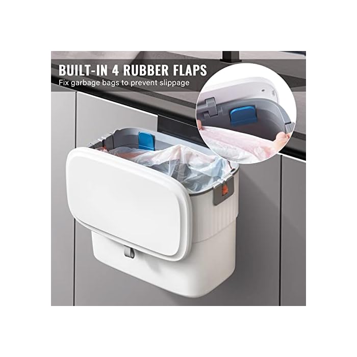Four Rubber Flaps – Mountable garbage cans come with elastic soft rubber device can effectively prevent the phenomenon of garbage bags slipping because of heavy garbage, and can help invisible garbage bags, so that the garbage cans look more beautiful at a glance.