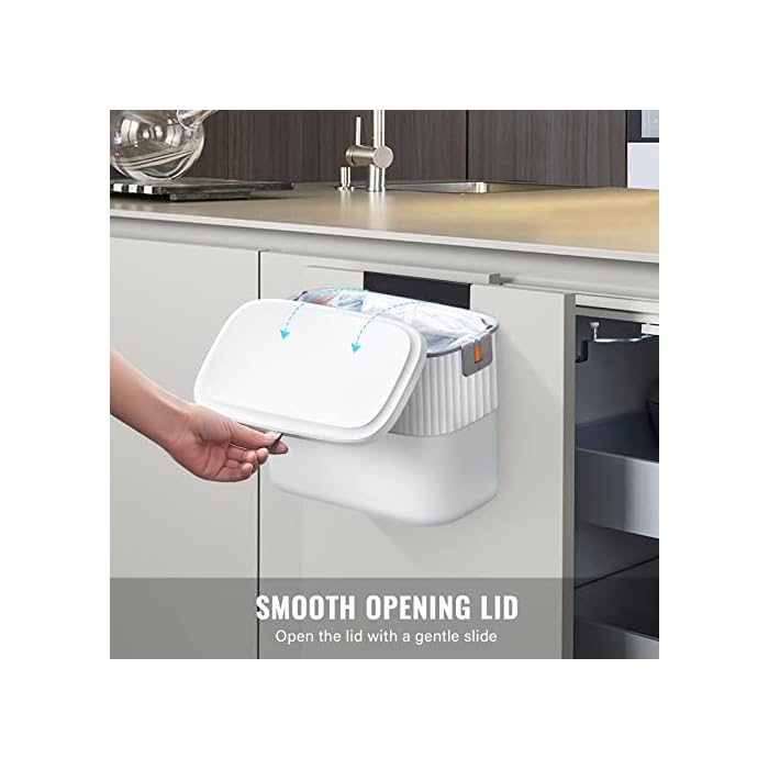 Wall-mounted/Hanging Trash Can – This trash can has two several types of improve components, both of which are easy to install, and you’ll be able to install them in any position you find most comfortable. The one with adhesive strip on the back is for customers to place on a flat and clean vertical surface like bathroom wall. The other one can also be hung on both sides of any cabinet door that may be not thicker than 1 inch.