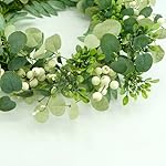 【Qualitative Materials 】The eucalyptus leaves are made of high quality silk material and lifelike. The eucalyptus leaves,olive leaves are beautifully paired with welcome sign,boxwood branches and cream berries. Each wreath is handmade with great attention to detail and craftsmanship and has a design quality not found in retail stores.