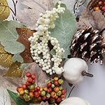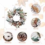 【Fall Decorations for Home】Our Thanksgiving porch wreath is handcrafted using artificial pinecones, maple leaves, foam pumpkins, and berries. This wreath is sure to add a touch of autumn charm to your home. The front of the wreath features realistic polyester fabric that feels smooth to the touch and resists wrinkling, providing an authentic visual and tactile experience. This beautifully designed, color-coordinated wreath will infuse your daily life with vibrant autumn hues.
