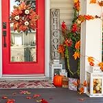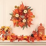 🍂【Widely Used】: No matter where you choose to display your fall leaf wreath – be it indoors or outdoors, above your fireplace mantel, on your front door, living room wall, window, porch, or even in your farmhouse – it will look great! You can also give it as a gift to thank your friends and family. This floral wreath is sure to bring an enjoyable ambiance to your home during this harvest season.