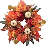Fall Wreaths for Front Door, DECSPAS 21″ Thanksgiving Fall Wreath with Maple Leaves Pumpkin Berries, Autumn Decorations for Home, Artificial Harvest Door Wreath Outside, Window, Wall, Mantel Decor