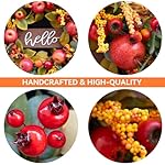 【Friendly and Inviting Autumn Wreath】 With its combination of rich reds, cheerful yellows, and soft greens, this autumn wreath brings positive energy and festive charm to your home. The wooden “hello” element adds personality and makes it ideal for on a regular basis use, not just fall holidays.