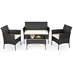 DURABLE & WEATHER-RESISTANT: This 4-piece patio set includes a rust-resistant steel frame and all-weather PE rattan for long-lasting durability. Features a stylish, easy-to-clean glass-best table.
