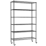 FDW 48″L×18″W×82″H Wire Shelving Unit Storage Cart Metal Shelf Rolling Utility Cart 2100Lbs Capacity with 6 Tier Casters Adjustable Layer Rack Strong Steel for Restaurant Garage Pantry Kitchen,Black