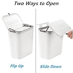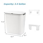 Package Includes: 2 pcs white and gray kitchen trash can with lid. Dimension: 10.1″L*6.1″W*11.2″H. Capacity: 2.4 Gallons/9 Liter. The perfect size for stashing inside cabinets, under counters, under sinks and other small compact areas