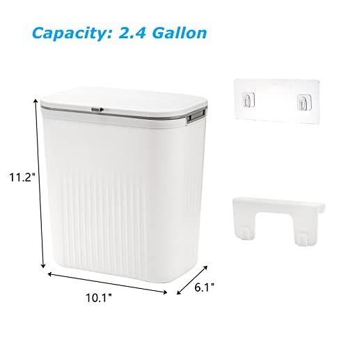 Package Includes: 2 pcs white and gray kitchen trash can with lid. Dimension: 10.1″L*6.1″W*11.2″H. Capacity: 2.4 Gallons/9 Liter. The perfect size for stashing inside cabinets, under counters, under sinks and other small compact areas