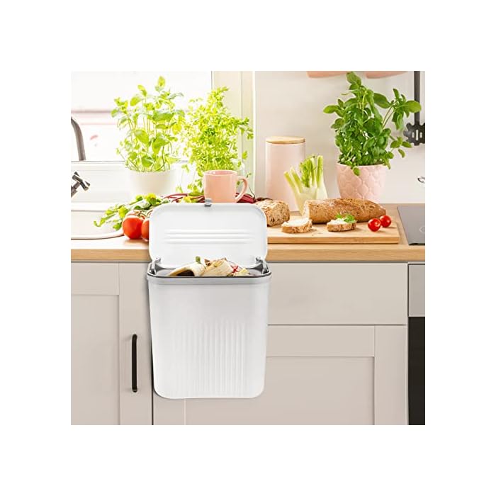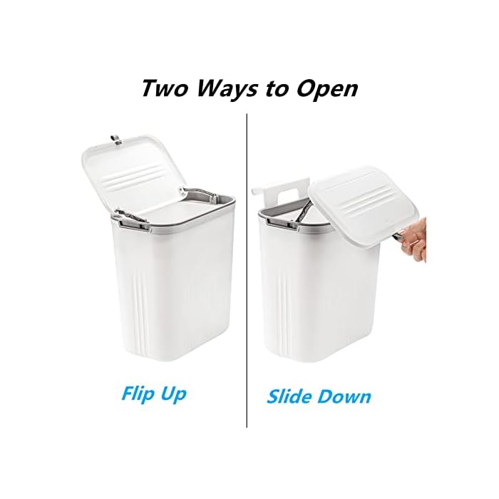 Wall Mount or Hanging: Each kitchen garbage can contains a hook and a adhesive board. It may be hung on the cabinet door, you don’t want to bend over to discard items(The thickness of the door will have to be less than 0.95 inch(2.5cm), hanging on the wall with adhesive board, or directly put on the counter top or the ground