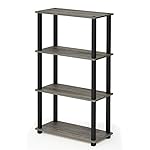 Furinno Turn-N-Tube 4-Tier Multipurpose Shelf Display Rack, Square Tube, French Oak Grey/Black