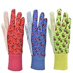 G & F 1852-3 Women Soft Jersey Garden Gloves, Women Work Gloves, 3-Pairs Green/Red/Blue per Pack