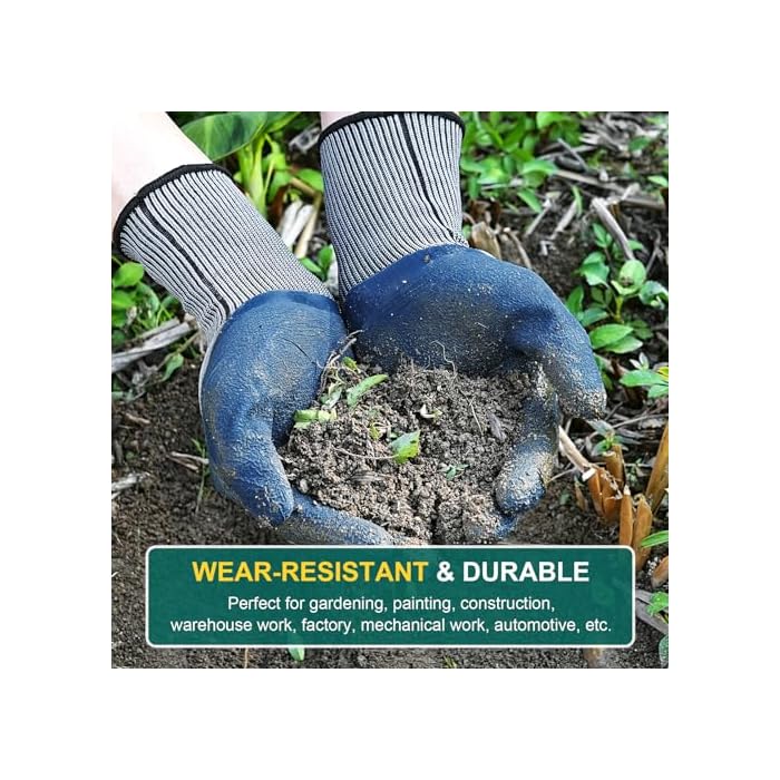 HARD-WEARING& SAFE – High-quality and hard-wearing gloves will give your hands full protection at the same time as you work. The latex coating on the palms and fingers of our gloves provides excellent wear resistance, safe grip, high flexibility and tactile sensitivity. No matter how harsh the conditions, it is effective in preventing scratches, small cuts and dirt.