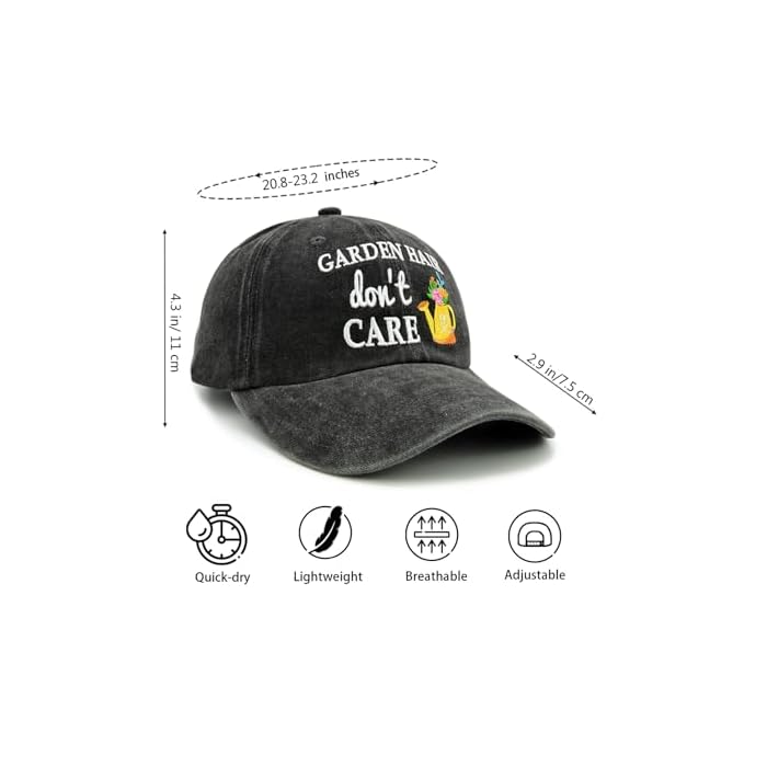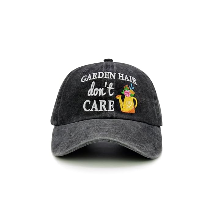 Garden Hair Don’t Care Hats for Women Mom, Gardening Hat, Adjustable Washed Cotton Embroidered Gardening Baseball Cap
