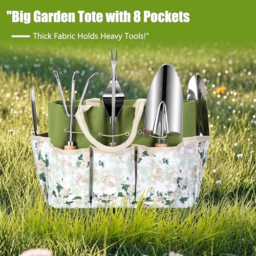 Garden Tools Set 10-Piece, Heavy Duty Stainless Steel Garden Hand Tools with Floral Tote Bag – Rust-Proof Garden Tools for Gardening, Gardening Gifts for Women Mom