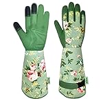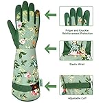 Gardening Gloves for Women, Comfortable Floral Long Sleeve Garden Gloves for Gardening and Outdoor Work, Durable Leather Long Gardening Gloves, Great Gift Ideas for Ladies, Green Print (Large)