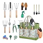 Gardening Tools 12 Piece, Heavy Duty Garden Tool Set Stainless Steel, Garden Hand Tools with Tote Bag, Non Slip Handles, Gardening Gifts for Women and Men