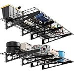 1,600 lbs load bearing: The garage storage shelf measures 72.05 x 24.8 x 12.01 inches (W x D x H) with a 0.5 foot arc height. Heavy-duty powder-coated steel garage storage racks are set to provide high-quality hardware for each and every component. It is dependent upon the load bearing capacity of the wall and the installation environment. The maximum load is 800 pounds per piece, and if mounted on a wall post, measure the distance before buying.