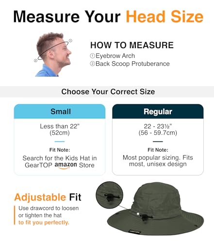 GearTOP Safari Hat for Men Sun Hats for Women UV Protection UPF 50+ Fishing, Gardening, Hiking Hat (22-23 1/2″)